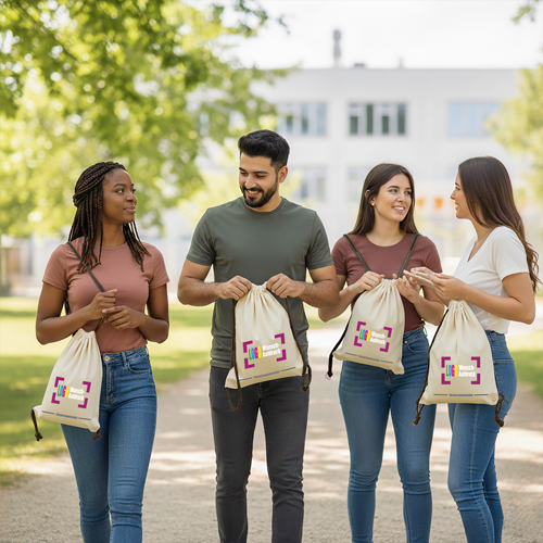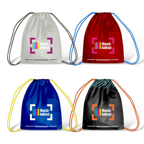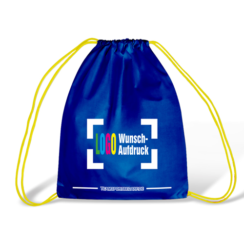 You will receive a high-quality gym bag (sports bag) measuring 40 x 50 cm, including your own customised print. This high-quality gym bag with your own customised print is the ultimate solution for athletes and coaches looking to combine functionality with a strong sense of team spirit. With its generous capacity of about 12 litres, our gym bag offers enough space for sports shoes, jerseys, towels, water bottles and much more. Thanks to the drawstring closure, this gym bag can also be worn as a backpack and is ready to use in seconds. Another special highlight: the gym bag is printed on both sides with your chosen design – club logo, sponsor, player names or promotional design. Both the bag colour and cord colour can be freely selected, so that your team's appearance can be perfectly matched to your club colours. Graphic design and shipping costs are already included!