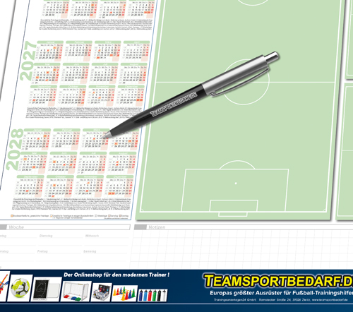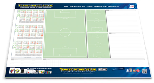 Si tratta di un blocco di fogli di qualità, in formato DIN A2, da riporre sulla scrivania con 25 fogli (blocco). Questo documento è ideale per la scrivania dell'allenatore di calcio Offre molto spazio per note, per pianificare la settimana d'allenamento, per considerazioni tattiche ed un amplio calendario per gli anni 2024, 2025 e 2026 (inclusa una panoramica sui giorni festivi). Come omaggio per l'acquisto di questi fogli, da riporre sulla scrivania, viene offerta una penna a sfera in metallo di qualità della Teamsportbedarf.de. I corrispondenti libri di lavoro ed agende sono comunque richiedibili presso il nostro Shop . Anche gli allenatori professionisti utilizzano il nostro materiale.