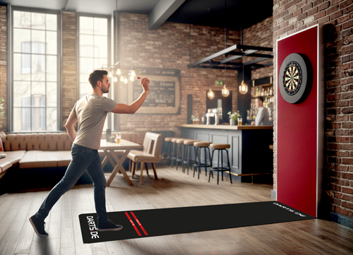 You will receive a high-quality, black darts runner mat from Darts.de. With this dart carpet, you can create the perfect foundation for a professional darts setup. Thanks to the official tournament dimensions that are printed on it, you can play and train under real competition conditions whenever you want. The exact distance from the throwing line to the board is clearly marked, so you don't have to measure or improvise. Just roll it out and get started right away! The simple black design looks high-quality and blends harmoniously into any environment. At the same time, the darts runner mat reliably protects your floor from damage caused by falling darts and ensures a secure footing when throwing. If you value exact dimensions and authentic training conditions, this dart carpet is the ideal solution for your home, clubhouse or hobby room! The price is for one black darts runner mat from Darts.de (without any accessories). We also sell matching dartboards, other darts accessories and more interesting items in our online shop. Professional sports teams already train with our products!