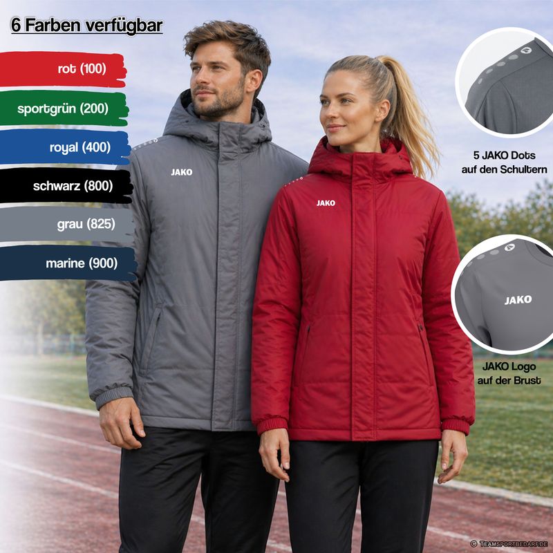- JAKO Team Coach Jacket with Hood – 6 Colours, 11 Sizes